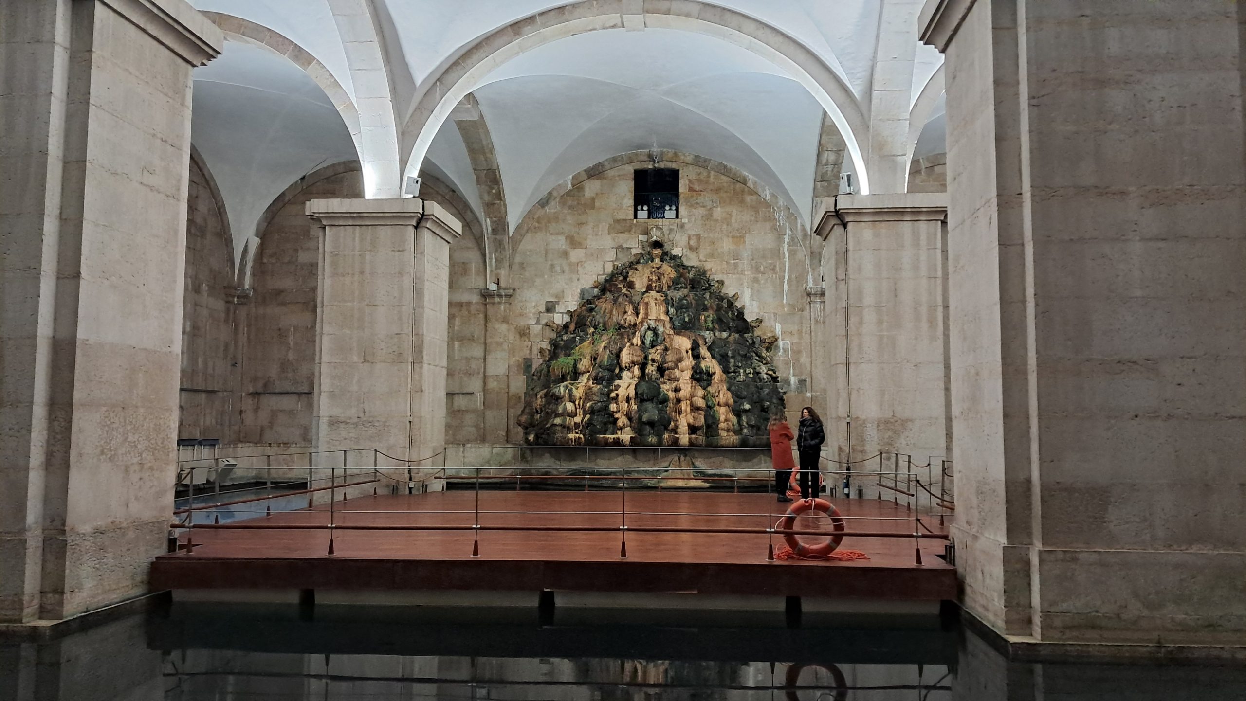 Apesar do interesse suscitado pelas explicações do guia, o chuvisco persistente que se fez sentir durante a manhã acabou por ser o aspeto menos positivo da atividade. Ainda assim, não foi suficiente para desmotivar o grupo, que prosseguiu até ao Reservatório da Mãe d’Água das Amoreiras, onde concluiu a primeira parte da visita. No interior do monumental reservatório, os alunos ficaram impressionados com a dimensão do espaço e com a forma como a estrutura permanece um testemunho vivo do património hidráulico da cidade.