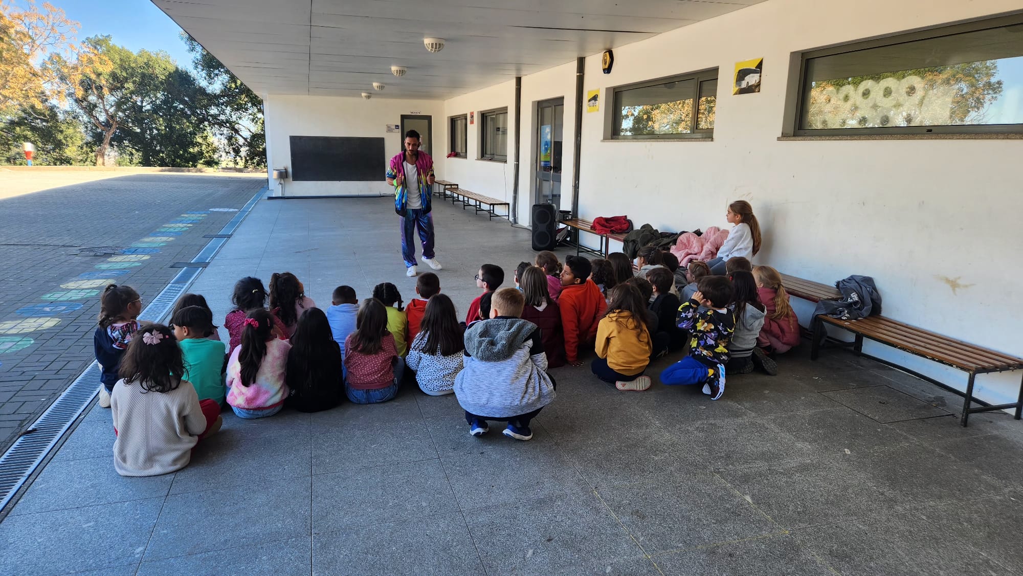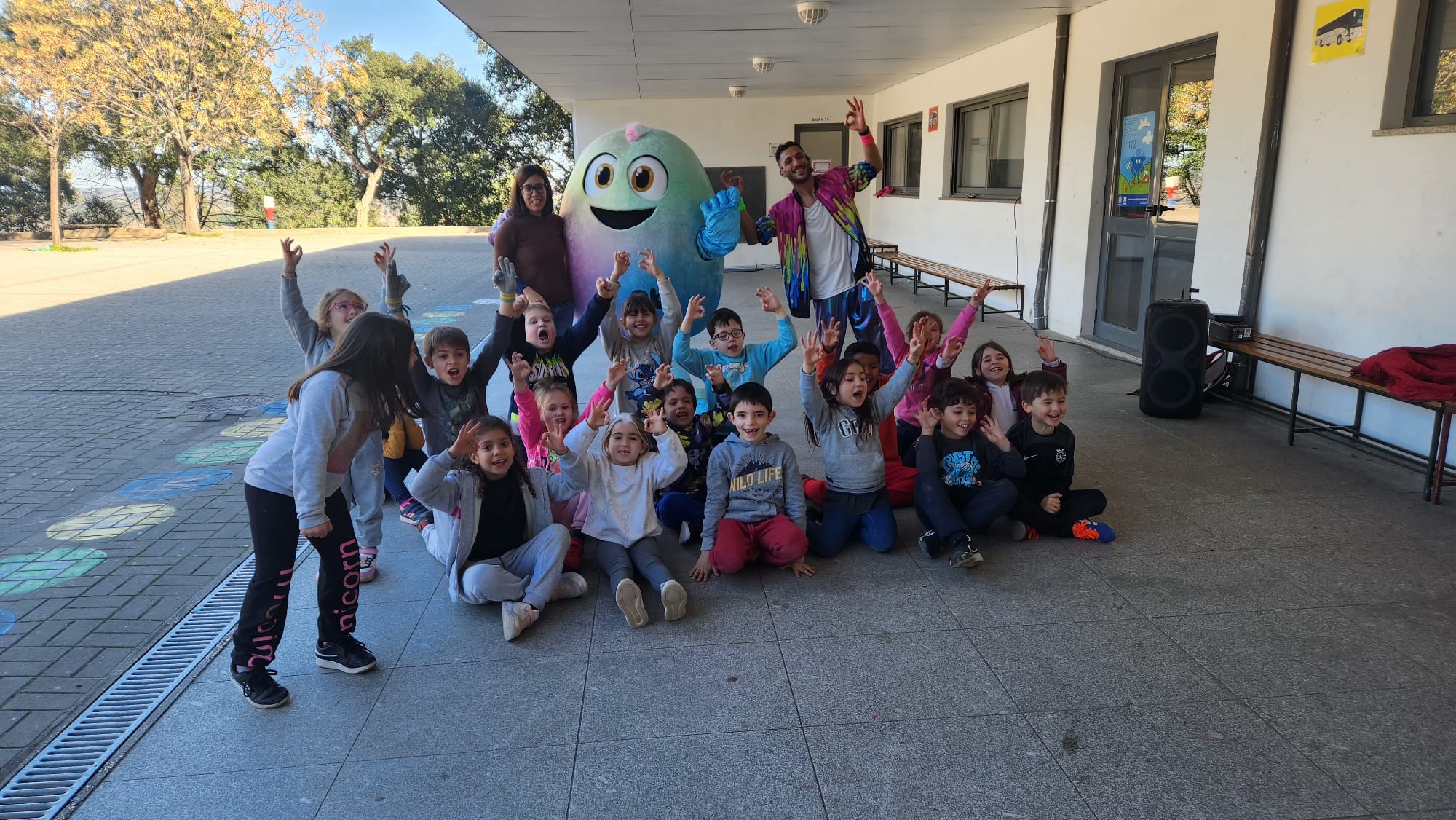 Os alunos, radiantes com a presença da tão querida personagem, não esconderam a alegria e juntaram-se numa verdadeira festa. Cantaram as músicas e dançaram as coreografias que aprendem nos manuais, transformando o pátio num espaço de diversão e aprendizagem.