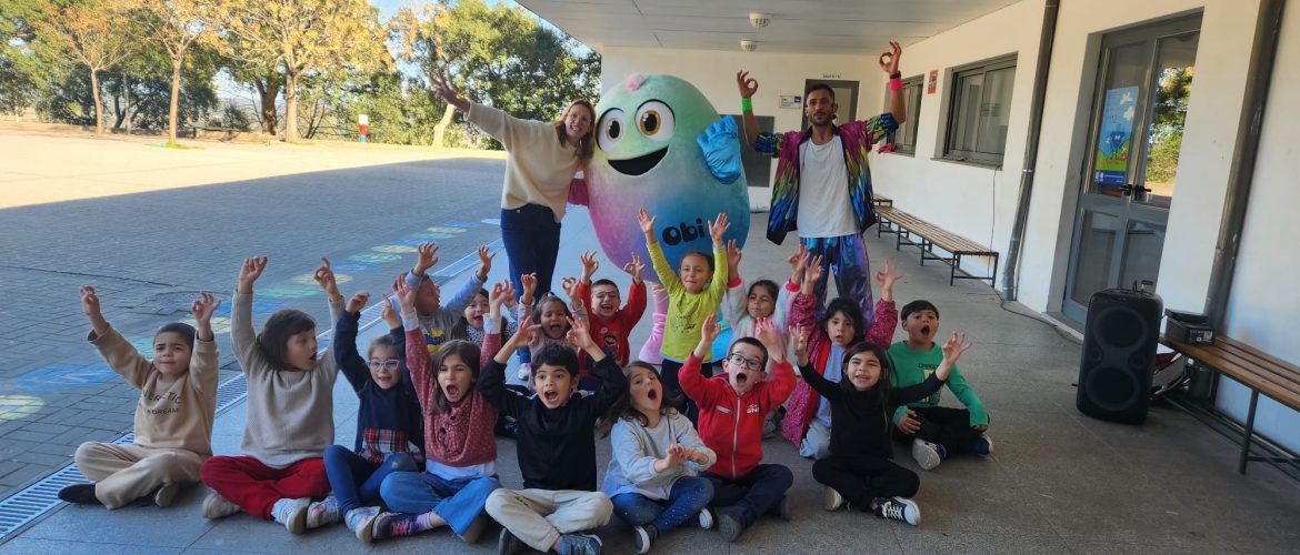 No passado dia 3 de fevereiro, a escola viveu um momento de grande animação e entusiasmo com a visita surpresa do “OBI”, a mascote dos manuais do projeto “Vamos”.