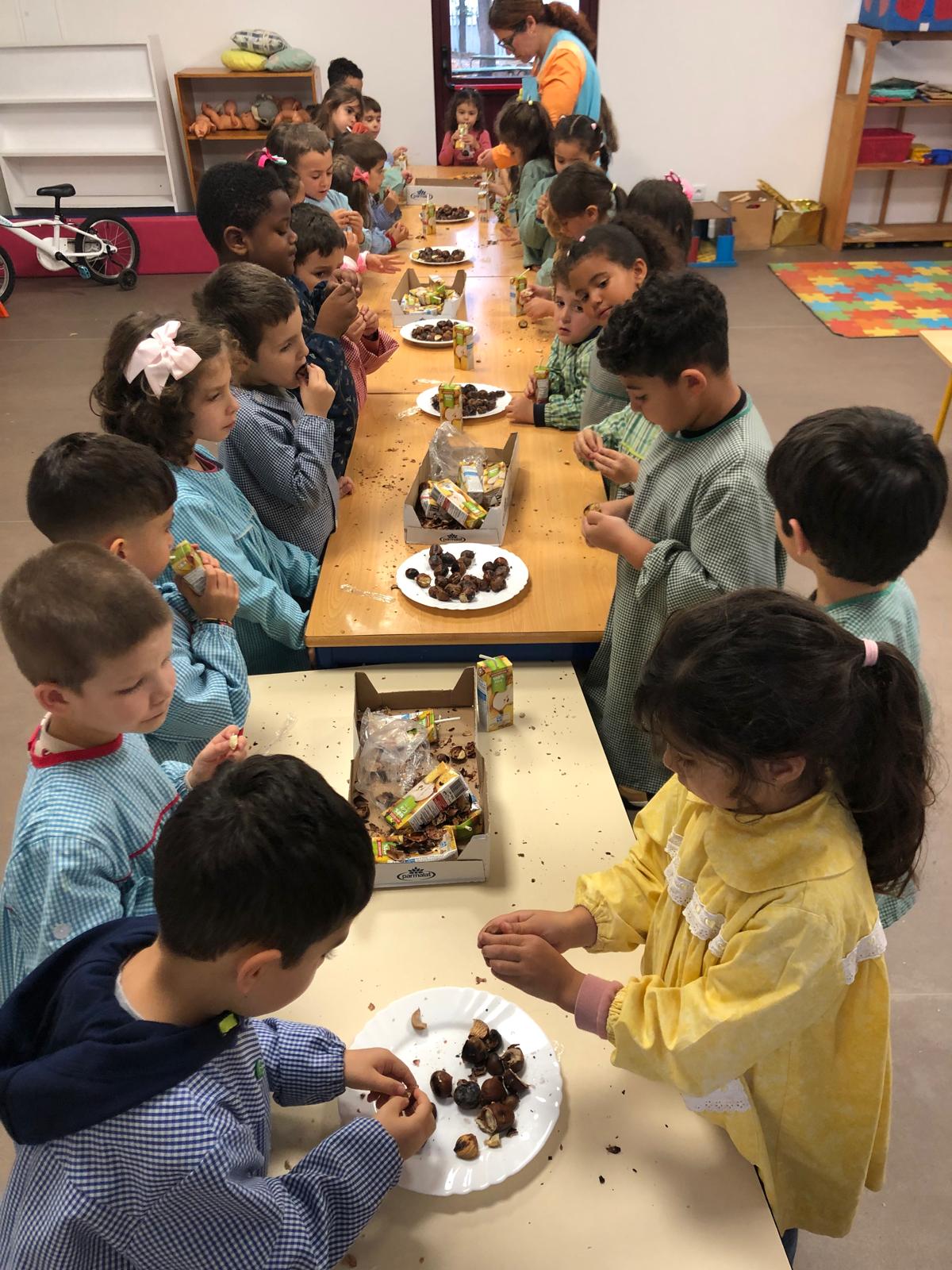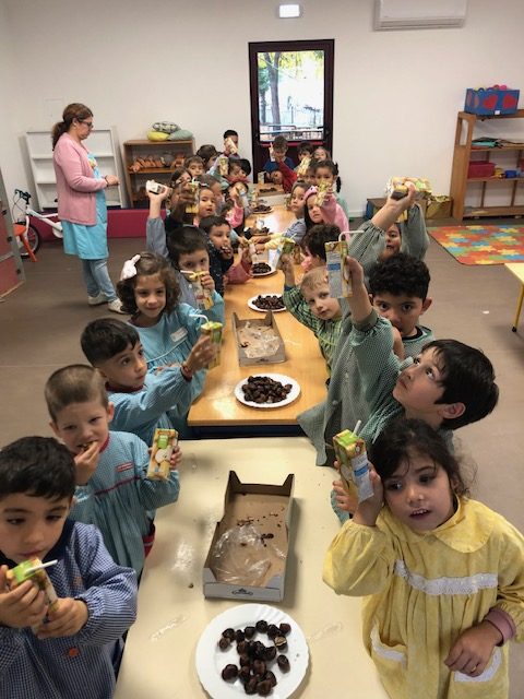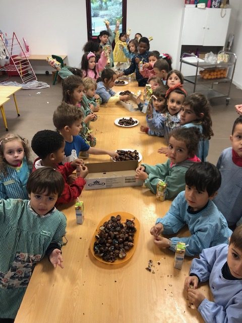 Houve tempo para elaborar fantoches (ouriços e castanhas) para oferecer aos pais promovendo, assim, a interação entre a escola e a família, criando-se uma maior proximidade e conhecimento sobre as aprendizagens feitas. Houve tempo para brincar ao S. Martinho (de acordo com a lenda tradicional); tempo para saborear as deliciosas castanhas assadas, oferecidas pela Junta de Freguesia, acompanhadas com um suminho, estabelecendo-se dinâmicas entre a escola, a comunidade e as famílias.